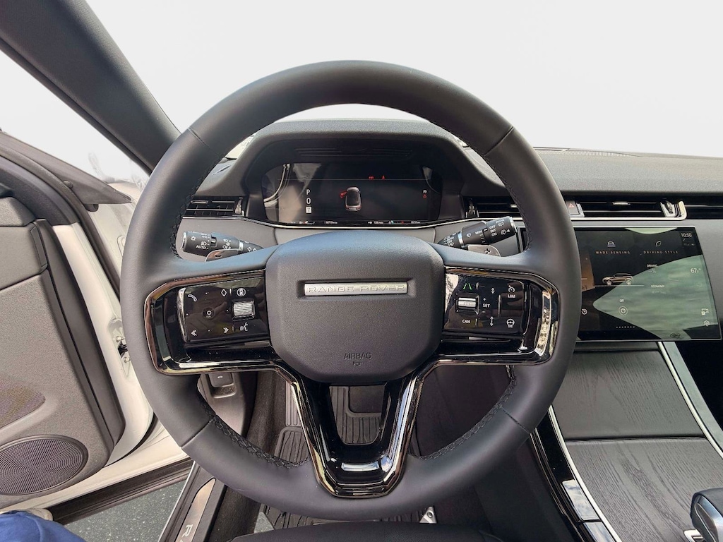 Powered by a 2.0L turbocharged petrol engine producing 249PS and paired with an automatic transmission and all-wheel drive, the Evoque offers responsive acceleration with composed handling. The Dynamic Handling Pack enhances driving dynamics, while the Black Exterior Pack, Black Contrast Roof, and 21-inch Style 5078 gloss black wheels give this Evoque a striking, sport-focused appearance.