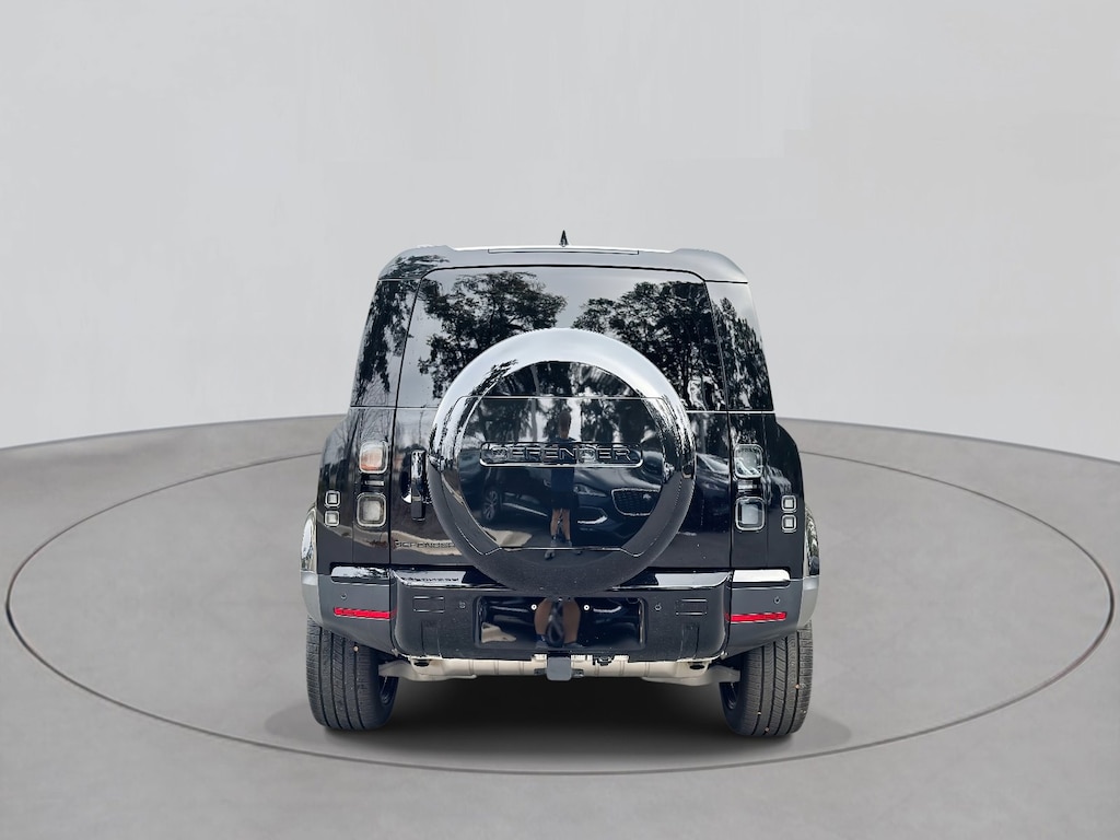 Santorini Black 2026 Land Rover Defender 110 S AWD 8-Speed Automatic 2.0L I4 DI Turbocharged 11 Speakers, 12-Way Heated Electric Memory Front Seats, 4-Wheel Disc Brakes, ABS brakes, Air Conditioning, Alloy wheels, AM/FM radio: SiriusXM, Apple CarPlay & Android Auto, Auto High-beam Headlights, Auto tilt-away steering wheel, Auto-dimming door mirrors, Auto-dimming Rear-View mirror, Automatic temperature control, Brake assist, Bumpers: body-color, Compass, Delay-off headlights, Driver door bin, Driver vanity mirror, Dual front impact airbags, Dual front side impact airbags, Electronic Stability Control, Exterior Parking Camera Rear, Four wheel independent suspension, Front anti-roll bar, Front Bucket Seats, Front Center Armrest, Front dual zone A/C, Front fog lights, Front reading lights, Fully automatic headlights, Garage door transmitter: HomeLink, Heated door mirrors, Heated front seats, Heated steering wheel, Illuminated entry, Low tire pressure warning, Memory seat, Navigation system: Connected Navigation PIVI Pro, Occupant sensing airbag, Outside temperature display, Overhead airbag, Overhead console, Panic alarm, Passenger door bin, Passenger vanity mirror, Power door mirrors, Power driver seat, Power moonroof, Power passenger seat, Power steering, Power windows, Radio data system, Radio: Meridian Sound System, Rain sensing wipers, Rear anti-roll bar, Rear fog lights, Rear reading lights, Rear seat center armrest, Rear window defroster, Rear window wiper, Remote keyless entry, Resist and Resolve Seat Trim, Security system, Speed control, Speed-sensing steering, Speed-Sensitive Wipers, Split folding rear seat, Steering wheel memory, Steering wheel mounted audio controls, Tachometer, Telescoping steering wheel, Tilt steering wheel, Traction control, Trip computer, Variably intermittent wipers, Weather band radio, Wheels: 19" Gloss Sparkle Silver Style 6010.