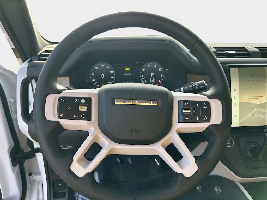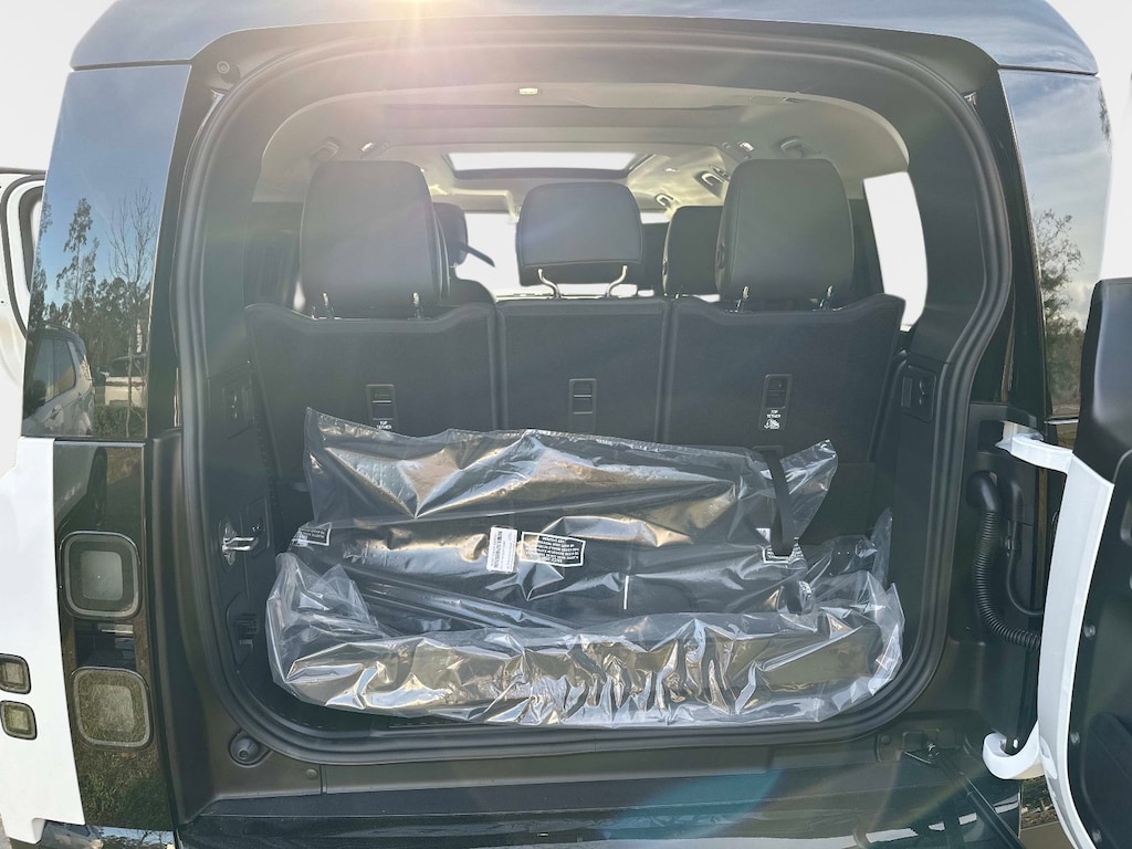 Fuji White 2026 Land Rover Defender 130 S AWD 8-Speed Automatic 3.0L I6 11 Speakers, 12-Way Heated & Cooled Electric Memory Front Seats, 3rd row seats: split-bench, 4-Wheel Disc Brakes, ABS brakes, Adaptive suspension, Air Conditioning, Alloy wheels, AM/FM radio: SiriusXM, Apple CarPlay & Android Auto, Auto High-beam Headlights, Auto tilt-away steering wheel, Auto-dimming door mirrors, Auto-dimming Rear-View mirror, Automatic temperature control, Brake assist, Bumpers: body-color, Compass, Delay-off headlights, Driver door bin, Driver vanity mirror, Dual front impact airbags, Dual front side impact airbags, Electronic Stability Control, Exterior Parking Camera Rear, Four wheel independent suspension, Front anti-roll bar, Front Bucket Seats, Front Center Armrest, Front dual zone A/C, Front fog lights, Front reading lights, Fully automatic headlights, Garage door transmitter: HomeLink, Heated door mirrors, Heated front seats, Heated steering wheel, Illuminated entry, Low tire pressure warning, Memory seat, Navigation system: Connected Navigation PIVI Pro, Occupant sensing airbag, Outside temperature display, Overhead airbag, Overhead console, Panic alarm, Passenger door bin, Passenger vanity mirror, Power door mirrors, Power driver seat, Power moonroof, Power passenger seat, Power steering, Power windows, Radio data system, Radio: Meridian Sound System, Rain sensing wipers, Rear air conditioning, Rear anti-roll bar, Rear fog lights, Rear reading lights, Rear seat center armrest, Rear window defroster, Rear window wiper, Remote keyless entry, Resist Seat Trim, Security system, Speed control, Speed-sensing steering, Speed-Sensitive Wipers, Split folding rear seat, Steering wheel memory, Steering wheel mounted audio controls, Tachometer, Telescoping steering wheel, Tilt steering wheel, Traction control, Trip computer, Variably intermittent wipers, Ventilated front seats, Weather band radio, Wheels: 19" Gloss Sparkle Silver Style 6010.