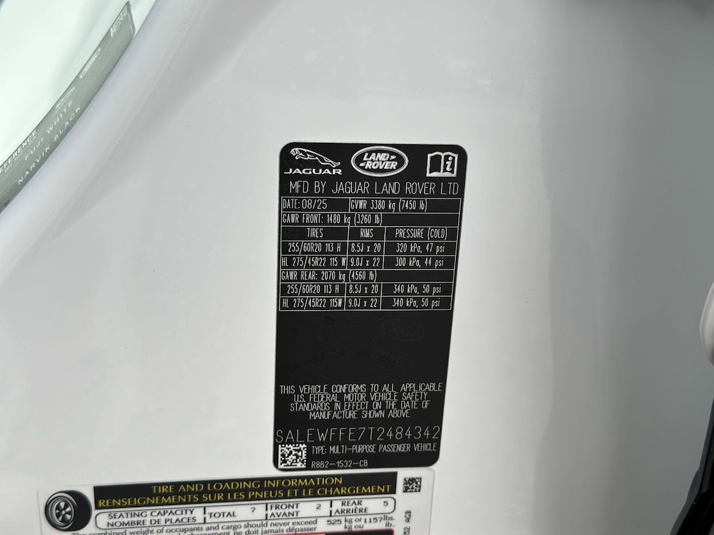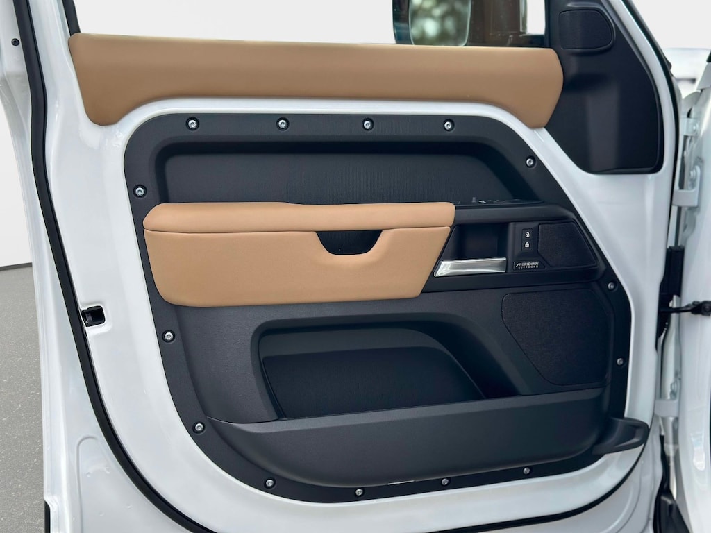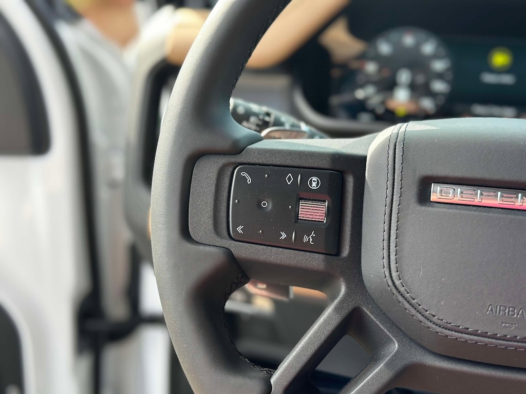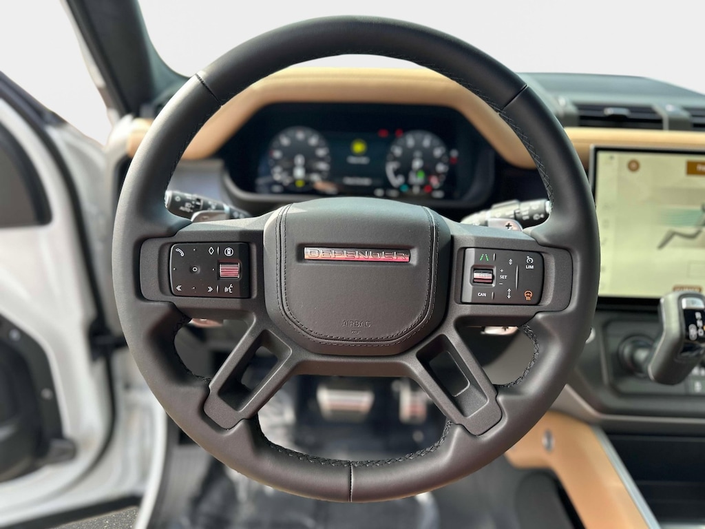 Fuji White 2026 Land Rover Defender 130 V8 AWD 8-Speed Automatic V8 Supercharged 14-Way Heated & Cooled Electric Memory Front Seats, 15 Speakers, 3rd row seats: split-bench, 4-Wheel Disc Brakes, ABS brakes, Adaptive suspension, Air Conditioning, Alloy wheels, AM/FM radio: SiriusXM, Apple CarPlay & Android Auto, Auto High-beam Headlights, Auto tilt-away steering wheel, Auto-dimming door mirrors, Auto-dimming Rear-View mirror, Automatic temperature control, Brake assist, Bumpers: body-color, Compass, Delay-off headlights, Driver door bin, Driver vanity mirror, Dual front impact airbags, Dual front side impact airbags, Electronic Stability Control, Exterior Parking Camera Rear, Four wheel independent suspension, Front anti-roll bar, Front Bucket Seats, Front Center Armrest, Front dual zone A/C, Front fog lights, Front reading lights, Fully automatic headlights, Garage door transmitter: HomeLink, Headlight cleaning, Heads-Up Display, Heated door mirrors, Heated front seats, Heated rear seats, Heated steering wheel, Illuminated entry, Leather Shift Knob, Leather steering wheel, Low tire pressure warning, Memory seat, Navigation system: Connected Navigation PIVI Pro, Occupant sensing airbag, Outside temperature display, Overhead airbag, Overhead console, Panic alarm, Passenger door bin, Passenger vanity mirror, Power door mirrors, Power driver seat, Power moonroof, Power passenger seat, Power steering, Power windows, Radio data system, Radio: Meridian Surround Sound System, Rain sensing wipers, Rear air conditioning, Rear anti-roll bar, Rear dual zone A/C, Rear fog lights, Rear reading lights, Rear seat center armrest, Rear window defroster, Rear window wiper, Remote keyless entry, Security system, Speed control, Speed-sensing steering, Speed-Sensitive Wipers, Split folding rear seat, Steering wheel memory, Steering wheel mounted audio controls, Tachometer, Telescoping steering wheel, Tilt steering wheel, Traction control, Trip computer, Variably intermittent wipers, Ventilated front seats, Ventilated rear seats, Weather band radio, Wheels: 22" Dark Grey Diamond Turned Style 7030, Windsor Leather & Kvadrat Seat Trim.