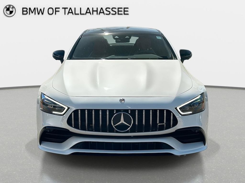 This 2021 Mercedes-Benz AMG GT 43 4-Door Coupe delivers a striking blend of performance, luxury, and coupe-inspired design. Finished in Diamond White Metallic over Red Pepper / Black Exclusive Nappa Leather, this AMG performance sedan offers a bold presence with sophisticated craftsmanship throughout.